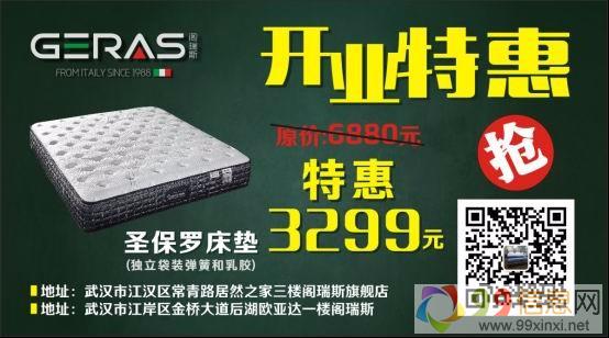 阁瑞斯家居武汉首店位于欧亚达家居后湖店,开业一年来得到了广大客户的认可和支持,为答谢广大消费者,也为了将健康的家居理念推广,将于常青路居然之家店三楼新开阁瑞斯旗舰店,新店开业推出特惠月,优惠不怕比,惊喜来不停www.99xinxi.net99信息网。